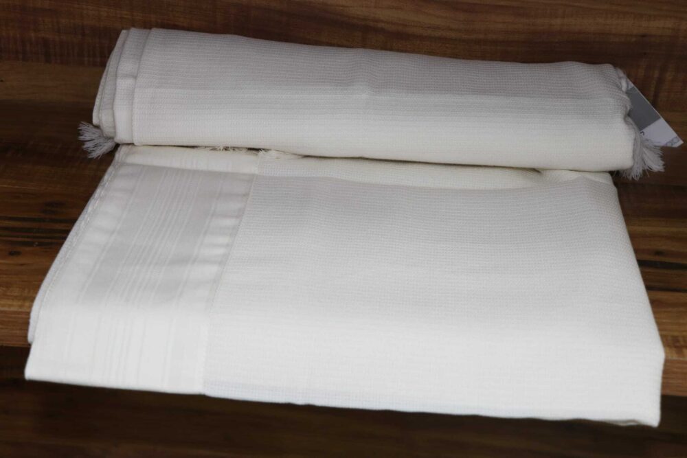 טלית צמר בית יוסף בצבע לבן. טלית איכותית מאוד ברמת ההידור הגבוהה ביותר.