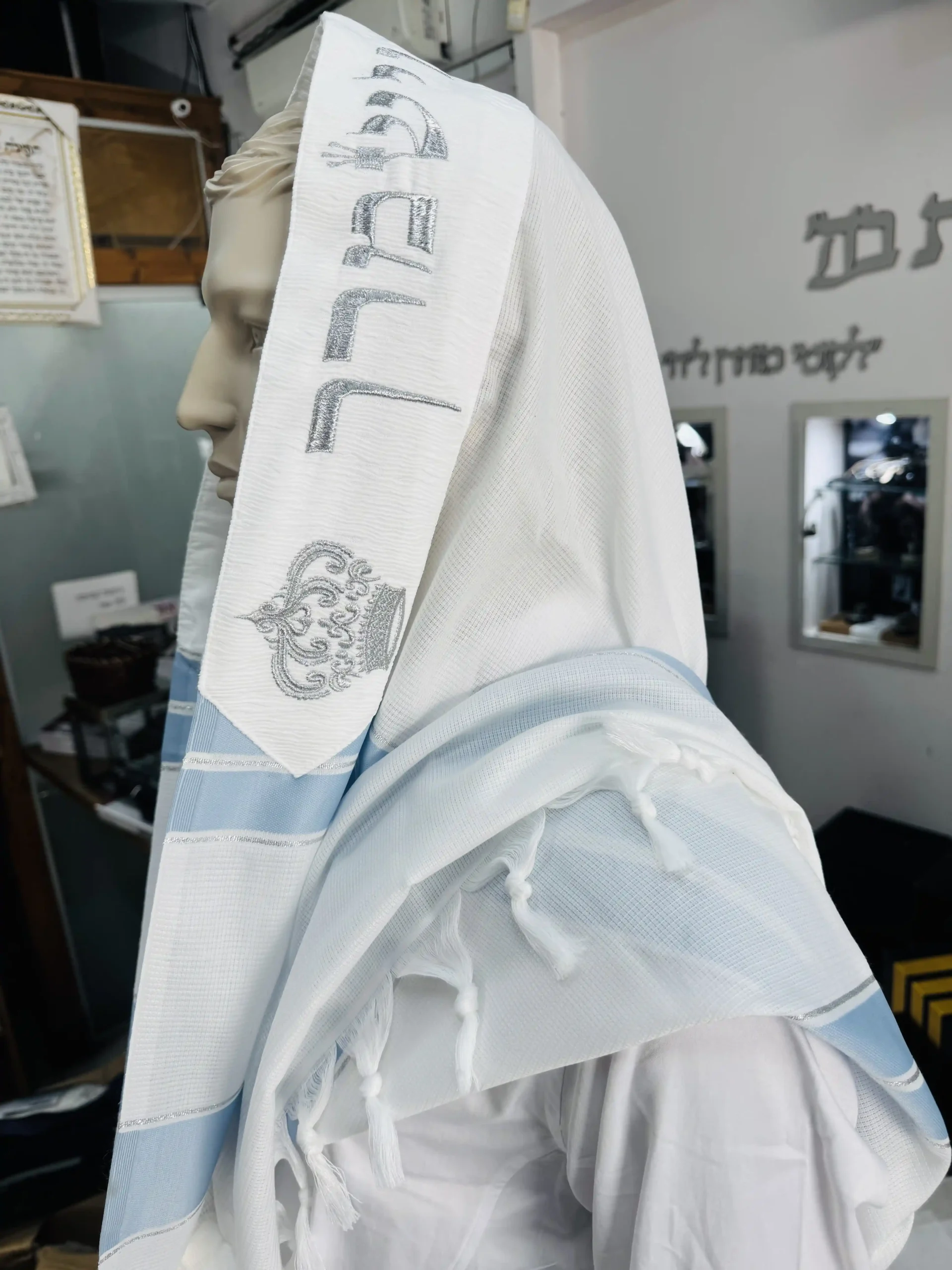 טלית חתן בר מצווה מבד סינטטי כותנה