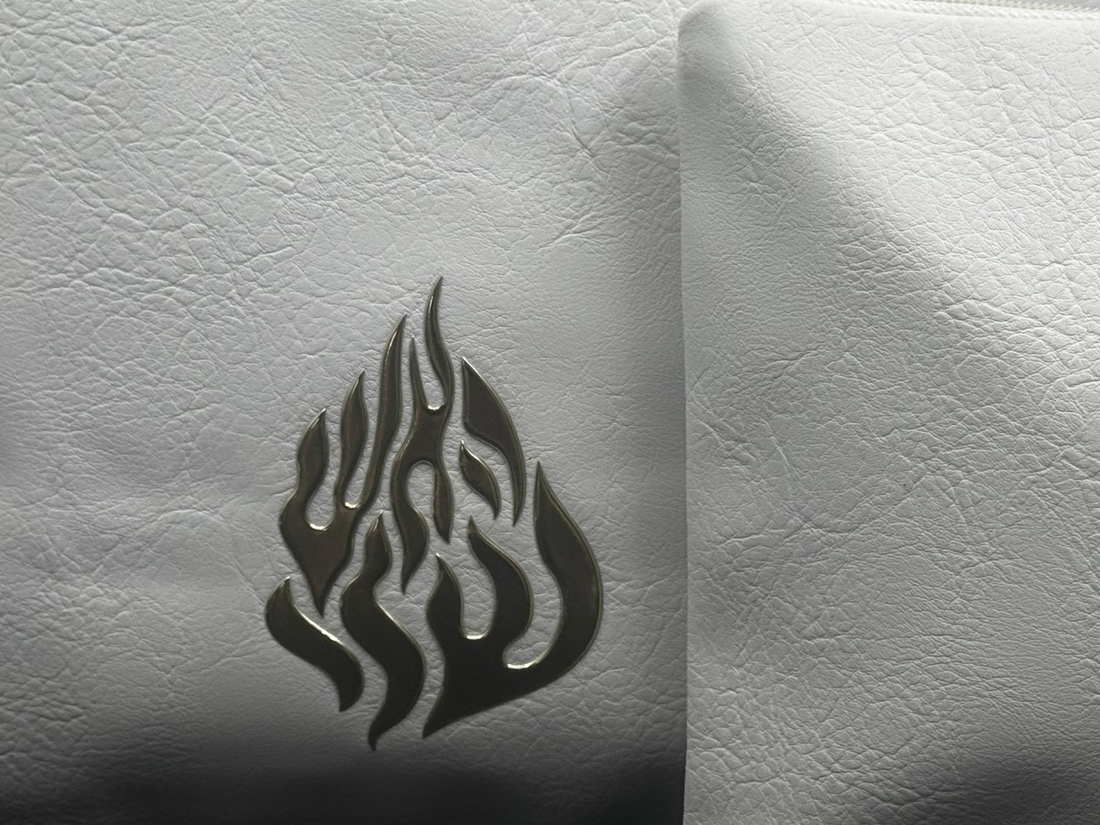 כיסוי טלית ותפילין דמוי עור לבן– האש שלי כסף מובלט משלב עיצוב ייחודי עם איכות מוקפדת. הדגם כולל סמל "האש שלי" באותיות בולטות המעניקות מראה יוקרתי ועוצמתי.