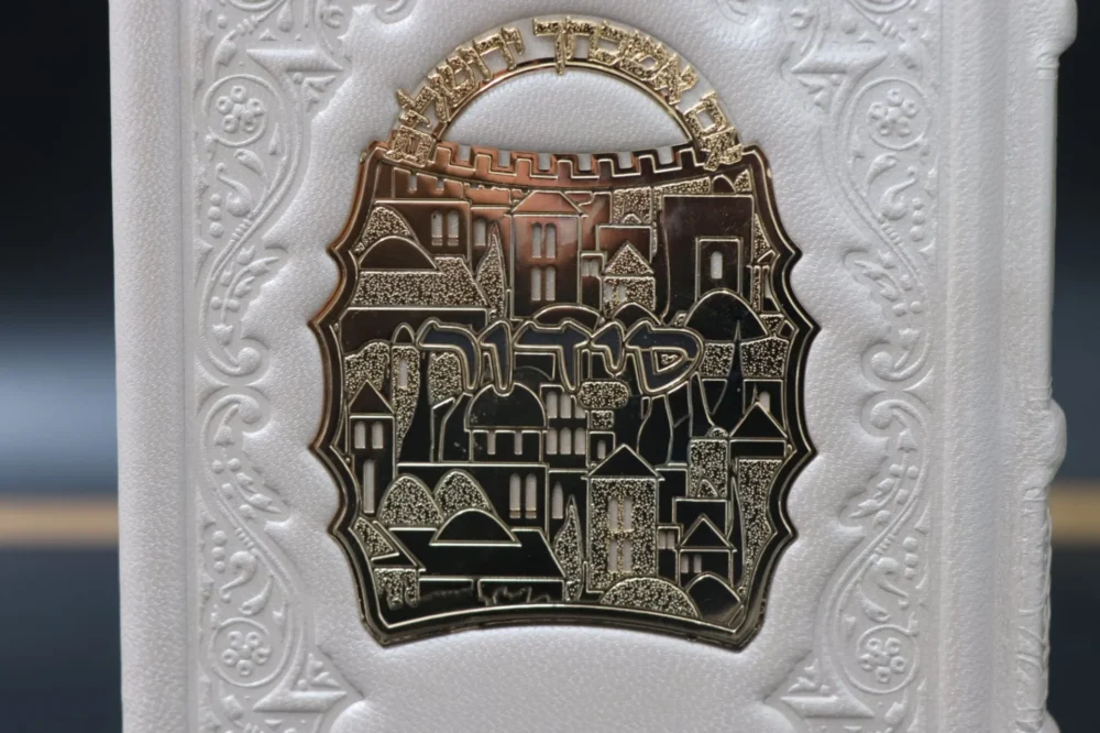 סידור יוקרתי לבר מצווה עם תהילים עור אמיתי בצבע לבן